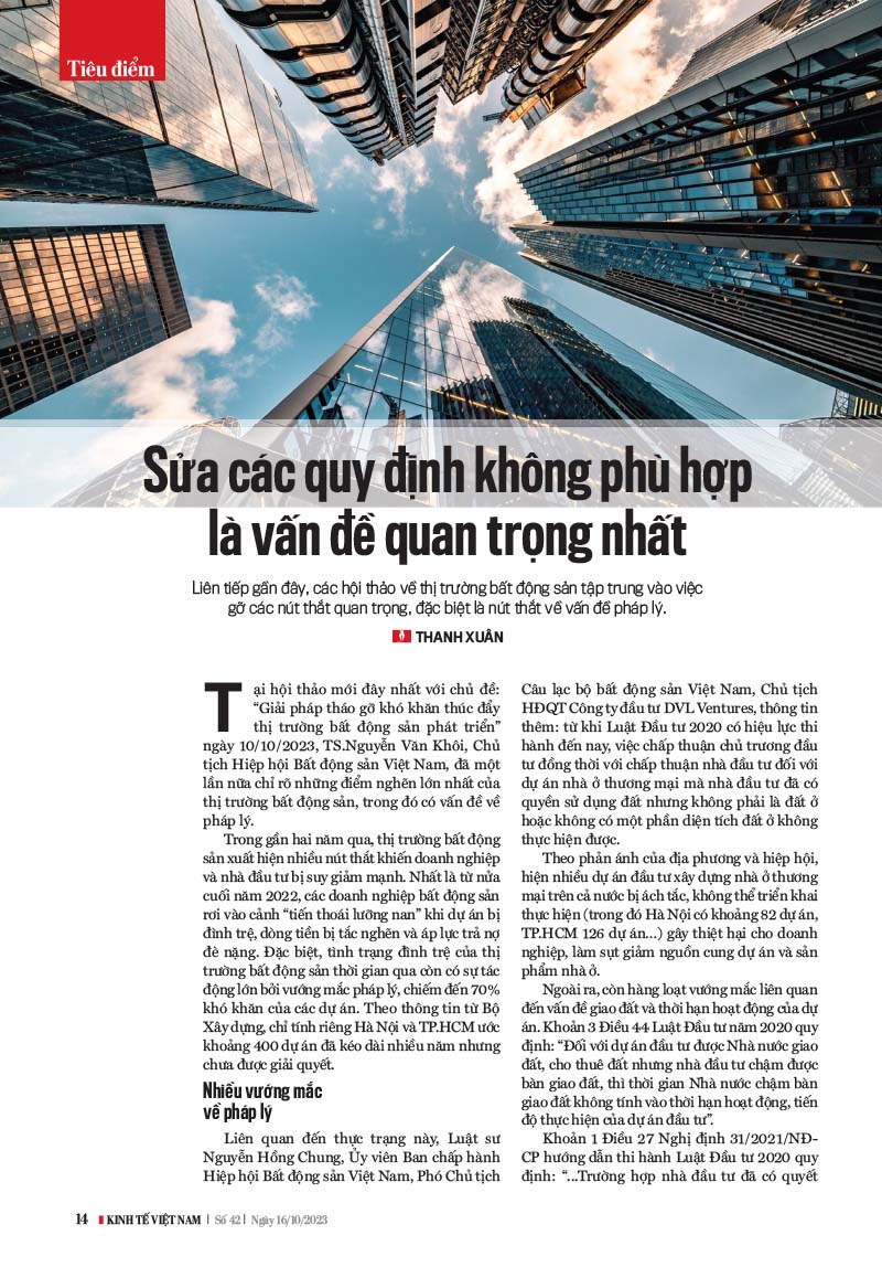 Vietnam’s real estate market has struggled with many bottlenecks over the past two years, sharply impacting businesses and investors. Legal issues count among the greatest bottlenecks facing the market. According to analysts, focus is needed on resolving projects facing legal problems by amending regulations regarding laws, decrees, and circulars that are no longer appropriate. The government, ministries, and branches have recently issued a number of mechanisms and policies that have a direct and indirect impact on the real estate sector.