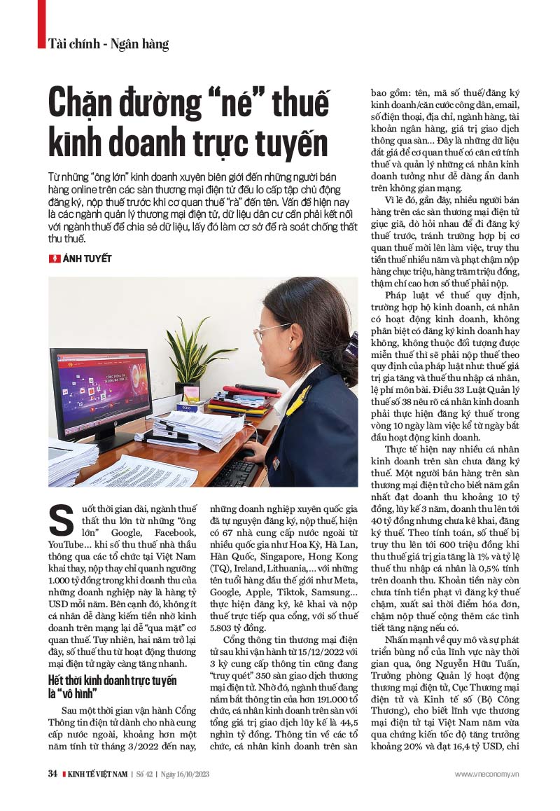 The tax sector has been losing revenue from “giants” such as Google, Facebook, and YouTube for quite some time. However, over the past two years, tax revenue from e-commerce activities has been increasing rapidly. The General Department of Taxation (GDT) has identified four challenges for the tax sector. The sector needs to build a centralized e-commerce database, including information on all organizations and individuals related to domestic and cross-border e-commerce. The sector and ministries and branches still have a lot of work to do to secure more revenue from the field.